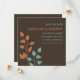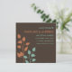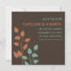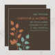 Lass deinen Freunden und Lieben, dass du mit diesen modernen, eleganten und zeitgemäßen Ankündigungen heiraten wirst, die auf einem schokoladenbraunen Hintergrund orangefarbene und aquamarine Baumgliedmaßen/Blätter enthalten. Modernes Design mit klaren Linien und Schriftart.