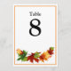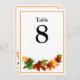 Die Farben des Herbstes. Sie können mit den Namen Ihres Gastes personalisieren und auch die Farbe der vorderen Tischnummer und des rechteckigen Rahmens ändern, wenn Sie möchten.
