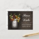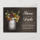 Herbstlaub Mason Jar Rustic Speichern Sie die Datu Ankündigungspostkarte