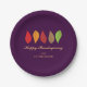 Diese Papiertafel zeigt eine Grafik von bunten Herbstblättern. Die Farben in diesem einfachen, aber kühlen Design sind rot, orange, braun und limig grün auf dunklem, lila Hintergrund. Anpassbarer Text, in hellorange, lautet: Glückliches Erntedankfest. Personalisieren Sie diese Papiertafel mit Ihrem Namen und dem Jahr.