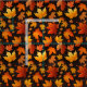 Inspiriertes Herbst/Herbst-Muster mit Ahorn-Blätter vor braunem Hintergrund.