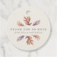 Dieses runde Tag wurde für die Koordination mit der Probe Dinner Kollektion von Lea Delaveris Design Herbstlaubs konzipiert und ist eine perfekte Touch, um sich bei Ihren Gästen zu bedanken. Mit seinen bunten Herbstblättern in Aquarelltönen funktioniert dieses Design auch für eine Herbsthochzeit oder ein Erntedank-Dinner. Sowohl der Dankeschön Text als auch die Namen sind für jede Nachricht, die Sie einschließen möchten, editierbar.