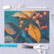 Herbstlaube und Rowan Beerry Tissue in blau-orangefarbenen Farben. Abstraktes modernes Blumentherzenöl bemalt Kunst.