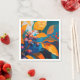 Herbstlaub und Rowan Beere Napkins. Abstraktes modernes Herbstöl gemalt Kunst in blau-gelb-orange Farben.