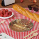 Herbstlaube & String Lights auf rustikalen Holz-Tellern. Matching-Elemente sind verfügbar.
