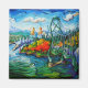 Jeden September herrscht das Gefühl, dass alles auf einmal beginnt und stirbt: Ferien enden, Schulzeiten und die Haushaltszyklen der Unternehmen beginnen, Früchte reifen und werden geerntet, Blätter ändern sich und fallen. Es kann verdammt verwirrend sein, sich an den Aufwärtstrend im Tempo zu gewöhnen, nachdem es durch langsamere Sonnentage im Sommer geträumt hat, aber die Veränderung kann belebend sein. Plötzlich gibt es eine brisante Erkältung am Anfang und Ende Ihres Tages und die Dinge scheinen viel schneller zu sein. Das ist die Eile. In dieser Szene geht es um Richtung und zielgerichtete Absicht. So fühlt man sich vielleicht, wenn man von der Nordküste durch den Stanley Park in die Innenstadt geschossen würde. Es geht darum, direkt in die Innenstadt zu gehen und Zweifel und Stöße und Hindernisse zu bekämpfen, um dorthin zu gelangen. Das Farbschema ist primär hell mit vielen rot-grün-gelben Ampelfarben, die durch Wirble Textur und Pinselstriche verstärkt werden. Sie ist sowohl lebendig als auch unmittelbar, aber wie immer ist das Beste noch "um die Kurve". So beginnt die Welt.