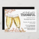Mit diesem modernen Erntedank laden Sie Ihre Familie und Freunde zum Erntedank-Dinner ein. Zu den Illustrationen zählen die Glitzer Blätter im Herbst und die Champagner-Gläser im Aquarell. Das Design enthält den Satz "essen, trinken, und dankbar sein". Personalisieren Sie Ihre Einladung mit Ihren Veranstaltungsdetails in schöner dekorativer Typografie. Besuchen Sie unseren Shop unter https://www.zazzle.com/store/printedhearts für passende Produkte wie Einladungen, Dankeschön, Buchanfragen - Bücher für Babyausgabekarten, Kuchen-Pop-Gefälligkeiten, Plätzchen, Windelkarten, Gefälligkeitsmarken, Wasserflaschen-Etiketten, Adressetiketten, Umschläge, Dekorationen und vieles mehr!