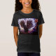 T - Shirt mit Herbstleaves Fairy Cat von Michaeline McDonald von einer niedlichen kleinen schwarzen Katze mit grünen Flügeln, die im Wind wehen und der Harvest Moon steigt hinter ihm auf.