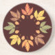 Gelbe, orangefarbene, braune und grüne Blätter, die kreisförmig angeordnet sind.