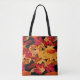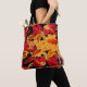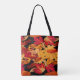 Feiern Sie den Herbst mit dieser hübschen Tasche. Auf schwarzem Hintergrund sind die Farbtöne Rot, Orange, Gelb und Braun zu sehen.