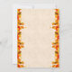 Eine perfekte Einladung für eine Babydusche im Herbst mit einem Schirm aus bunten Blätter vor einem bunten Hintergrund. Es gibt einen unteren Rand von bunten Herbstblättern und auf der Rückseite befinden sich die Blätter auf beiden Seiten.