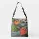 Diese Tragetasche ist mit hübschen orangen und gelben Herbstlauben ausgestattet, die sich auf einem alten Baumstamm im Wald von Connecticut ruhen. Günstig für ein Geburtstagsgeschenk oder eine Hochzeit im Herbst Brautjungfrau Geschenk.