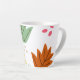 Dieses spielerische Muster erweckt den Herbstgeist mit einer lustigen und skurrilen Drehung. Mit einer Reihe stilisierter Blätter in lebhaften Herbstfarben - Senfgelb, gebrannt orange und schlaugrün - ist das Design Set vor einem beruhigenden dunkelblauen Hintergrund. spielerisch