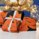Herbstleuchte mit strahlenden Blattdesigns in warmen, leuchtenden Farbtönen Orange und Gelb. Dieses Verpackungspapier bringt die Magie des Sturzes in jedes Geschenk.