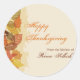 Herbstblätter in verschiedenen Tönen und Dias bilden den links Rand dieses Aufklebers. Ihr individueller Text sitzt vor einem cremefarbenen Hintergrund. Verwenden Sie, um all diese leckeren Erntedank- oder Herbstgoodies zu kennzeichnen, die Sie in dieser Saison zu erschaffen haben. Verfügbar mit passenden Produkten.