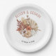 Herbstliche Blume und Palmenblatt Terracotta Hochzeit im Herbst Hochzeitspapier Teller. Dieses schöne Hochzeitsdesign beinhaltet einen Bouquet mit Aquarelltüchern, Rose-Blätter und Pampas-Gras.