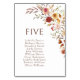 Treten Sie ein in zeitlose Eleganz mit unseren böhmischen Hochzeit im Herbst-Tischnummern. Jede Zahl zeichnet sich durch eine zarte Bordeaux- und Terrakotta-Blume aus, die in eleganten Kränzen verwoben ist. Diese Tischnummern sind mit einer einfachen, minimalistischen, dunkelbraunen Kalligraphie-Schrift geschmückt und strahlen einen raffinierten Charme aus. Sie sind perfekt geeignet für rustikale, botanische und gartenbezogene Herbsthochzeiten und bieten Platz für so viele Gäste wie nötig pro Tisch.