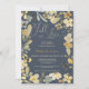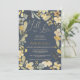 Herbstliche Herbstchic-Brautparty mit hübschem Grün, Gelb, Senf und Khaki-Blume mit Blätter und Eukalyptus. Ein boho inspiriert Herbst Brautparty Thema mit einer modernen Herzskripttypografie und einem hübschen Blumenmuster auf der Rückseite auf Retro staubblauen Hintergrund
