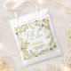 Herbst in Liebe boho florale Herbstchic Brautparty Gefallen Tasche mit hübschen grün, gelb, Senf und khaki Blume Rahmen mit Blätter und Eukalyptus. Ein boho inspiriert Herbst Brautparty Thema mit einer modernen Herz-Drehbuch Typografie.