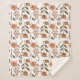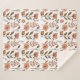 Das Bild zeigt ein anmutiges Muster aus stilisierten Blumen in warmen Orange- und Brauntönen, umgeben von grünen Blättern und zarten Zweigen. Die harmonische Wiederholung der Elemente strahlt eine ruhige Herbststimmung aus, die Wärme und Natürlichkeit vermittelt. Es erzeugt ein Gefühl von Geborgenheit und ästhetischem Gleichgewicht.