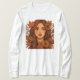 Ein bezauberndes, halbrealistisches Portrait einer wunderschönen Frau mit herbstlichen Blume und warmen Saisontönen. Dieses Design ist perfekt für Bekleidung, Drucke und Zuhause-Dekoration und besticht durch die Eleganz der femininen Schönheit, die mit dem gemütlichen Charme des Herbstes vermischt wird. Ideal für Modeliebhaber, Kunstliebhaber und Liebhaber der Herbstästhetik.