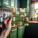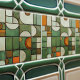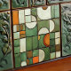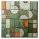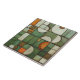 Diese Keramik-Kachel ist ein Meisterwerk visueller Komplexität und simuliert eine strukturierte Zusammenstellung von Formen und Farben, die an eine herbstliche Landschaft erinnert. Die flache Oberfläche ist eine Leinwand für die Imitat Relieftechnik, die eine Reihe von gekrümmten und eckigen Formen darstellt. Kürbisorange, cremiges Elfenbein und verschiedene Oliven- und Jägergrün sorgen für eine reichhaltige Tapisserie, während sich die Bräune und die gesprenkelte Bräune zu erdigen Akzenten erheben. Die Illusion der Tiefe wird durch akribisches Schattieren erreicht, wodurch die Segmente wie gehobene Stücke aussehen, als würden sie sich ausbreiten. Diese Kachel mit gekratzter Glaswirkung und aufwändigem Design bietet eine warme, rustikale Ästhetik für jeden Raum, der die Kunst des Trompe-l'oeil und die Schönheit der Herbstfarben feiert.