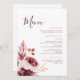 Herbstmenü für Hochzeiten in Burgund und Rosa Menükarte