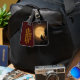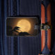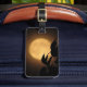 Machen Sie Ihr Gepäck auf einem Flughafenkarussell mit einzigartigen Tags auffallend! Es ist Herbst, und ein leuchtend goldgelber Vollmond ist hinter den schwarzen Silhouetten von Blätter aufgetaucht, die in der Brise auf diesem dramatischen kunstfotografischen Gepäckanhänger wehen. Der Hintergrund ist in Orange-, Gold- und Brauntönen beleuchtet, um ein abstraktes Muster in einem asiatischen Motiv zu erzeugen. Die Rückseite hat einen braunen Hintergrund für Ihre persönlichen Daten.