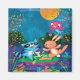 Künstlerin: Elisa Chavarri | Racoon und Hasen und Frosch und Eule tanzen nachts im Teich mit einem großen Herbstmond über ihnen im Himmel