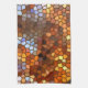 Dieses dekorative Küchentuch weist ein geometrisches abstraktes Muster von fünfseitigen pentagon-förmigen Mosaikfliesen in brillanten Herbstfarben aus Rot, Orange, Braun, Gelb, Gold, Blau, Grau, Schwarz und Weiß auf.