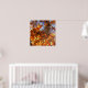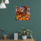 Dieses dekorative Plakat weist ein geometrisch abstraktes Muster von fünfseitig pentagonförmigen Mosaikfliesen in brillanten Herbstfarben aus Rot, Orange, Braun, Gelb, Gold, Blau, Grau, Schwarz und Weiß auf.