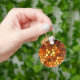 Dieser dekorative Schlüsselanhänger zeichnet sich durch ein geometrisch abstraktes Muster aus fünfseitig pentagonförmigen Mosaikfliesen in brillanten Herbstfarben aus Rot, Orange, Braun, Gelb, Gold, Blau, Grau, Schwarz und Weiß aus.