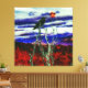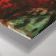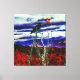 In einem Nachthimmel mit einigen Wolken ist ein Vollmond, der rot ist und sich über einer Gruppe von Bergen und Hügeln erhebt. Eine Krähe steht auf einem Ast eines toten Birkenbaums und blickt auf den Wald von roten Blattbäumen. Artwork Copyright ©2018 Kimberly J Tilley.