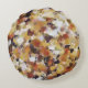 Abstraktes Kissen mit Herbstfarben in Gelb, Orange und Grün. Von celeste@khoncepts.com