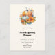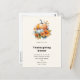 Erntedank Dinner Einladung Postkarte mit einem fallthematischen Bild. Orangefarbene und weiße Kürbisse, umgeben von Herbstlauben und orangefarbenen Blume.