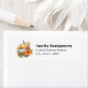 Adressetiketten mit einem reduzierten Themenbild. Orangefarbene und weiße Kürbisse, umgeben von Herbstlauben und orangefarbenen Blume.