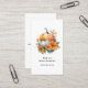 Visitenkarten mit fallendem Themenbild. Orangefarbene und weiße Kürbisse, umgeben von Herbstlauben und orangefarbenen Blume.