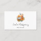 Visitenkarten mit fallendem Themenbild. Orangefarbene und weiße Kürbisse, umgeben von Herbstlauben und orangefarbenen Blume.