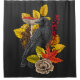 Handbemalte Illustration eines Raben- und Herbstbotanicals-Blätter, Pilze und Beeren