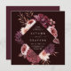 Diese Hochzeitseinladung beinhaltet einen Aquarellkranz aus Dahlien, Rose aus dem Garten und Pony in bordeauxrot, maronrot, rot und rot über Herbstlauben mit einem Rautenrahmen. Klicken Sie auf die SCHALTFLÄCHE BLAUE DESIGN TOOL, um eine erweiterte Anpassung dieses Designs zu erhalten. Matching-Elemente sind ebenfalls verfügbar.