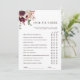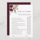 Dieses "Over or Under" Brautparty-Spiel bietet eine Aquarellbouquet aus Dahlien, Rose im Garten und Pony in bordeauxrot, maron, rot über Blätter. Klicken Sie auf die SCHALTFLÄCHE BLAUE DESIGN TOOL, um eine erweiterte Anpassung dieses Designs zu erhalten. Matching-Elemente sind ebenfalls verfügbar.
