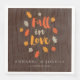 Fügen Sie Ihrer Herbstverlobungsfeier eine besondere Touch hinzu, z.B. eine Paardusche, ein Probe-Dinner oder eine Hochzeit, mit diesen Herbstnapkins. Dieses typografische Design zeigt die Phrase "Fall in Liebe" in Schriftart mit Pinselschrift und fallendem Blätter, in Orange, Braun und Senfgelb/Ocker auf dunklem Holzhintergrund. Personalisieren Sie mit Ihren Namen und Hochzeitstermin.