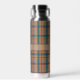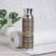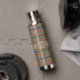 Eine weiche, rohe Holzbasis wird von den Porenweinbändern rot, leuchtend herbstorange und einem üppigen Dschungelgrün in diesem angenehmen karierte abgerundet, das trendige Farbtöne in einem gemütlichen Muster vereint, das perfekt zum Herbst passt. Passen Sie das Monogramm mit Ihrem Initial an, um eine Wasserflasche zu erstellen, die einzigartig für Sie ist.
