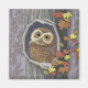 Dieses Naturliebhaberdesign zeigt Herbstfarben und eine junge Eule, die in einem hohlen Baum versteckt ist.