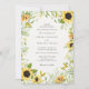 Sonnenblumen-Thema Hochzeit Einladung. Das Design besticht durch einen Kranz mit Sonnenblumen und Grünpflanzen in Aquarellen. Personalisieren Sie Ihre Daten oder klicken Sie auf "Weitere Anpassungen vornehmen", um Schriftart Stile, Größe und Farben zu bearbeiten.