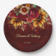 Hochzeit im Herbst Burgundy Rose gelbe Sonnenblumen grün bordeauxroten Hintergrund personalisierte monogramm gedruckte Papier Teller Vorlage personalisiert Hochzeitsdekor
