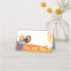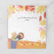 Ein bunter Truthahnvogel und ein freundlicher Vogelscheuchen besuchen an einem Herbsttag. Lemongelbe und verbrannte Sienna-Blätter umrahmen die Szene. Originelle Illustration des Künstlers Noël Ill.