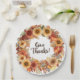 Bringen Sie die warmen Farbtöne des Herbstes an Ihren Urlaubstisch mit diesen eleganten Erntedank-Papier-Tellern! Mit einem wunderschönen Aquarellkranz aus herbstlichen Blume, Kürbissen, Gourds, Herbstlauben und Eicheln, die schön rund um den Tellerrand angeordnet sind. Ideal für Erntedank-Dinner, Ernte-Party oder saisonale Ansammlungen. Center links für Essen oder optionalen Text wie "Give Danke". Heller, moderner Aquarellstil mit lebhaften Herbstfarben für eine festliche, gemütliche Atmosphäre.