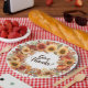 Herbstthematischer Erntedank mit Blume Kürbis Pappteller