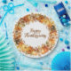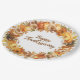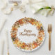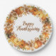Bringen Sie die warmen Farbtöne des Herbstes an Ihren Urlaubstisch mit diesen eleganten Erntedank-Papier-Tellern! Mit einem wunderschönen Aquarellkranz aus herbstlichen Blume, Kürbissen, Gourds, Herbstlauben und Eicheln, die schön rund um den Tellerrand angeordnet sind. Ideal für Erntedank-Dinner, Ernte-Party oder saisonale Ansammlungen. Center links für Essen oder optionalen Text wie "Give Danke". Heller, moderner Aquarellstil mit lebhaften Herbstfarben für eine festliche, gemütliche Atmosphäre.